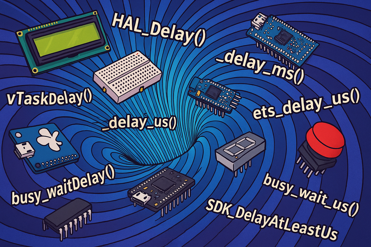 Por isso, compreender profundamente como cada família implementa suas funções de atraso é uma habilidade essencial para qualquer desenvolvedor de sistemas embarcados. Este artigo analisa, capítulo por capítulo, as abordagens adotadas pelos principais fabricantes — RP2040, ESP32, STM32, AVR, NXP e Renesas — explicando como suas funções de delay funcionam, quando usá-las e quais são as armadilhas mais comuns. Ao final, apresentamos um resumo comparativo que serve como guia rápido para projetos futuros.