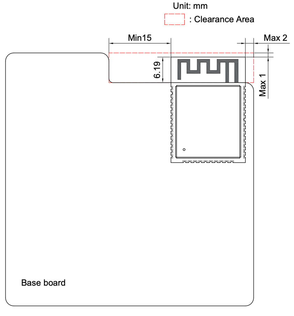 Quando se utiliza um módulo com antena integrada, a área abaixo e à frente da antena deve permanecer completamente livre de cobre, trilhas, planos de terra ou componentes metálicos. Essa é a chamada região de keep-out. A presença de cobre nessa região altera a impedância vista pela antena, modifica o diagrama de