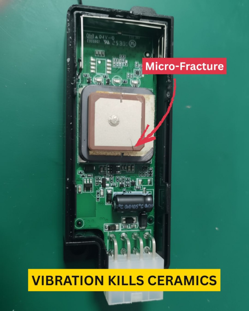 A interpretação do texto destaca um ponto essencial para projetistas de sistemas embarcados: a falha não ocorre porque a antena cerâmica é ruim, mas porque ela é inadequada para ambientes vibratórios. A solução, portanto, não está em tentar reforçar a cerâmica ou torná-la mais rígida — isso apenas agravaria o problema — e sim em permitir que o conjunto absorva a vibração de forma natural sem gerar tensões na interface solda–componente.
