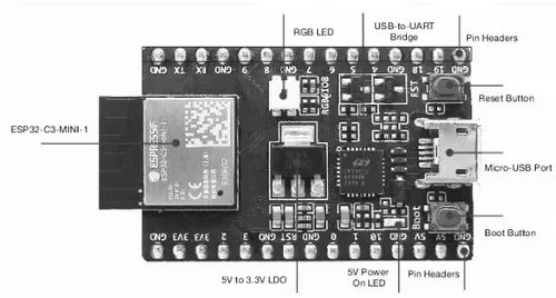 O ESP32-C3 marca uma mudança estratégica importante na família ESP32 ao adotar a arquitetura RISC-V em substituição ao tradicional núcleo Xtensa. Trata-se de um microcontrolador single-core, projetado explicitamente para aplicações de IoT de baixo consumo, nas quais simplicidade, custo reduzido e segurança são fatores determinantes. Ele integra Wi-Fi 2,4 GHz e Bluetooth Low Energy no mesmo chip, o que o torna particularmente adequado para sensores inteligentes, tomadas conectadas, dispositivos vestíveis simples e nós periféricos em redes maiores.