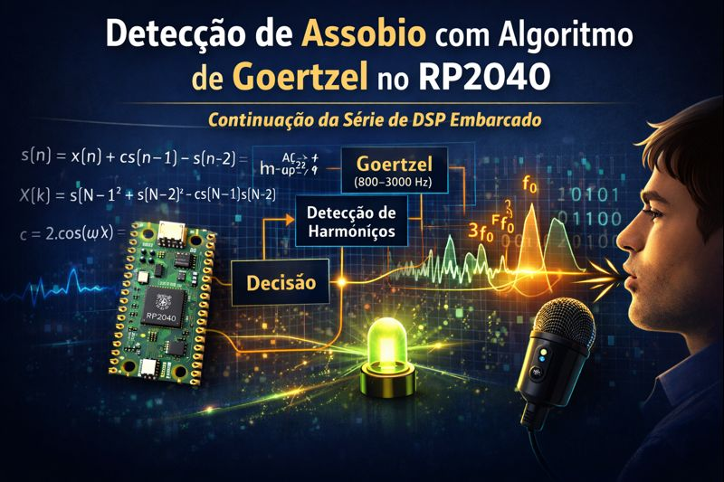 Este artigo apresenta uma implementação completa e didática do algoritmo de Goertzel para detecção de assobio humano em microcontroladores RP2040, dando continuidade à série de processamento digital de sinais iniciada